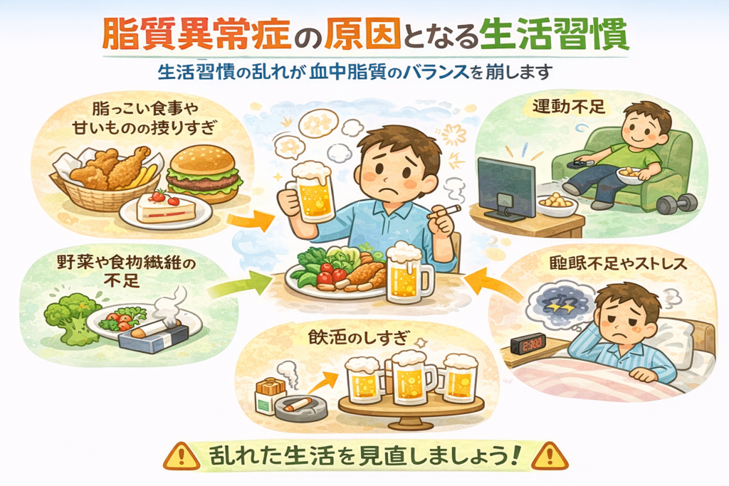 脂質異常症は、生活習慣に強く関係しています。